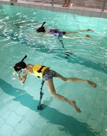 Tijdens de VR-snorkeldagen wordt het sportbad omgetoverd tot een wondere onderwaterwereld. Met een VR-bril en snorkel zwem je tussen de zoetwatervissen en haaien, een exclusieve attractie in België!
