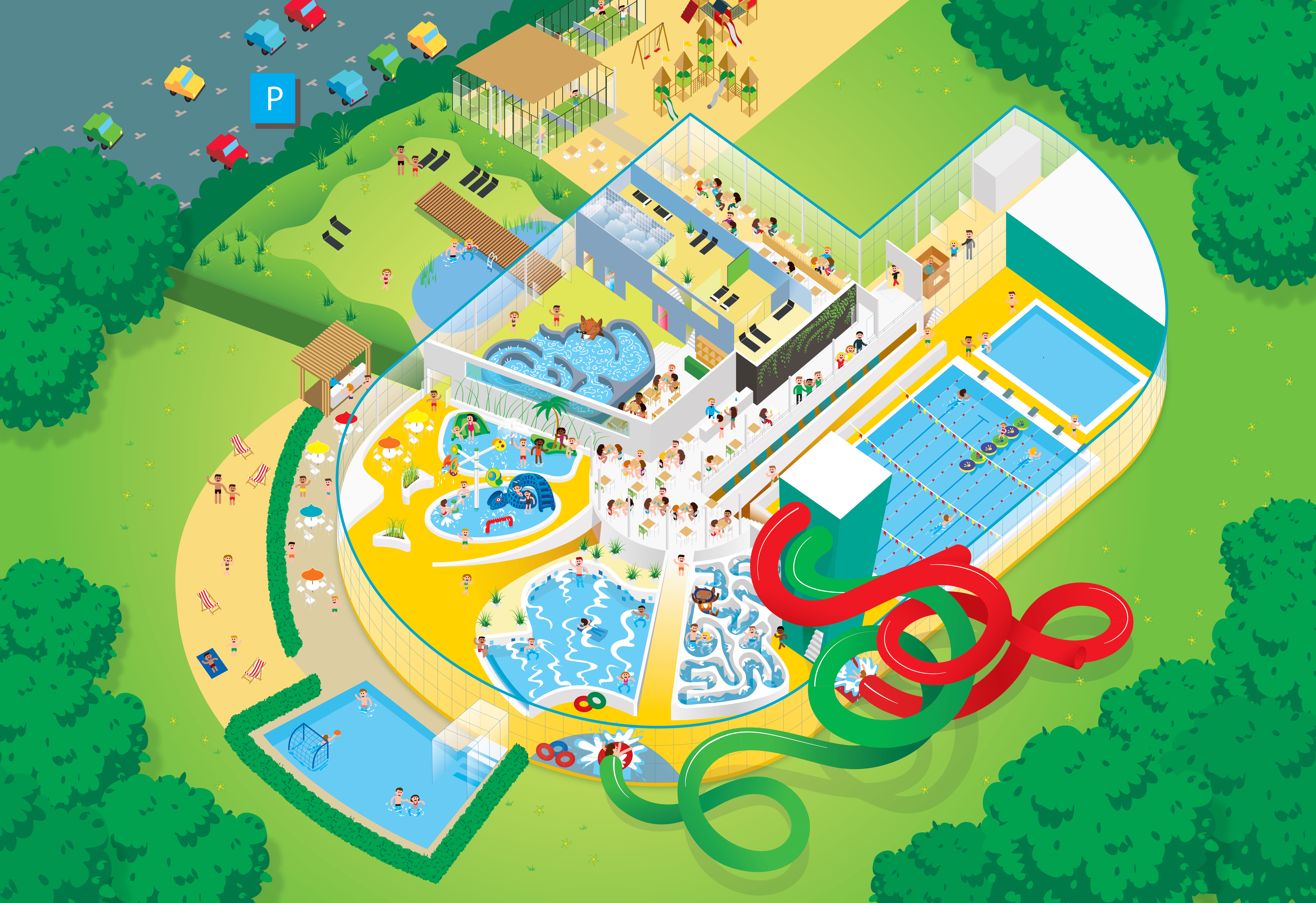 Ervaar kriebels in de twee glijbanen, trotseer de golven in het golfslagbad en laat je meevoeren door de stroming in de wildwaterbaan. Kom tot rust in de warme lagune met ontspannende watermassages of neem een verfrissende duik in het verwarmde buitenbad. De allerkleinste wateravonturiers beleven eindeloze waterpret in de warme kinderbaden. Het belooft een dag vol wateravontuur te worden!