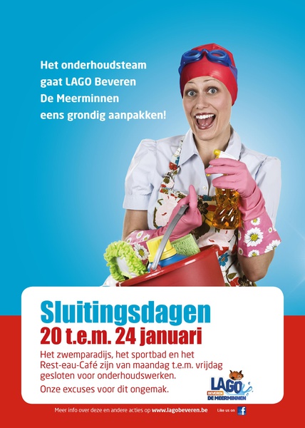 Het zwemparadijs, het sportbad en het Rest-eau-Café zijn van maandag 20 januari t.e.m. vrijdag 24 januari gesloten voor onderhoudswerken.