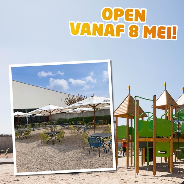 We hebben er lang op moeten wachten… maar nu is het zover! Ons Rest-eau-café opent (deels) terug de deuren. Vanaf zaterdag 8 mei kunnen jullie met vier gezellig buiten vertoeven op ons terras in een aangename, groene omgeving. Een klein hapje, een lekker drankje, ontspannen in het zonnetje… daar zeggen wij alleszins volmondig ‘ja!’ tegen. Meer nog, terwijl de ouders even achterover leunen en genieten van een welverdiende verfrissing, kunnen de kids zich helemaal uitleven in de zandbak.