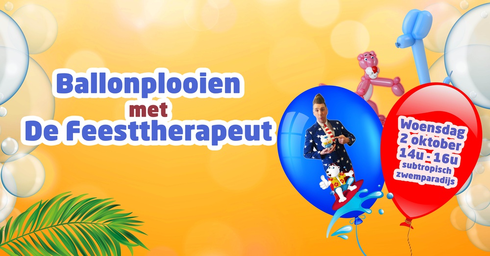 De feesttherapeut komt naar het subtropisch zwemparadijs en tovert de mooiste ballonfiguurtjes tevoorschijn.