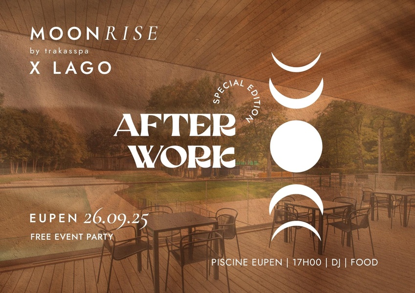 Zum Start ins Wochenende lädt Lago Eupen am Vorabend des Events zu einem kostenlosen Afterwork ein.Auf dem Programm: Sonnenuntergang, frische Cocktails, entspannte Stimmung und die ersten DJ-Sets, um die Moonrise-Vibes einzuleiten.