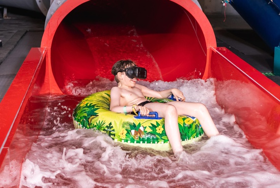 De virtual slide neemt je vanaf 8 jaar mee op een avontuurlijke tocht door drie leuke thema’s: jungle, space en snow. Aan de ingang van de glijbaan kies je zelf één van de virtuele werelden en zet je een VR-bril op om aan het avontuur te beginnen. Een ritje op een houten rollercoaster, een ruimtereis tussen planeten of een afdaling in een sneeuwlandschap staan op het keuzemenu. Je kan gratis gebruikmaken van de VR wanneer je een ticket voor het subtropisch zwemparadijs hebt aangekocht.