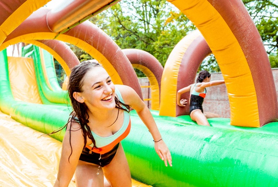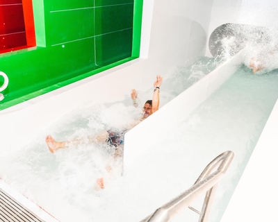 Subtropisch zwembad met 5 waterglijbanen, golfslagbad, wildwaterbaan, kinderbaden en wellnesszone.