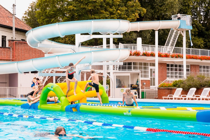Openluchtzwembad met fonteinbad, kinderbad, glijbanen en ligweide. Enkel geopend in juli en augustus.