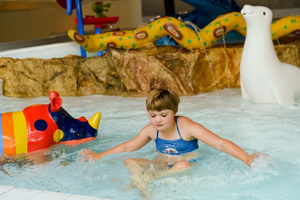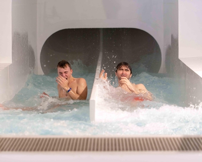 Subtropisch zwembad met 5 waterglijbanen, golfslagbad, wildwaterbaan, kinderbaden en wellnesszone.