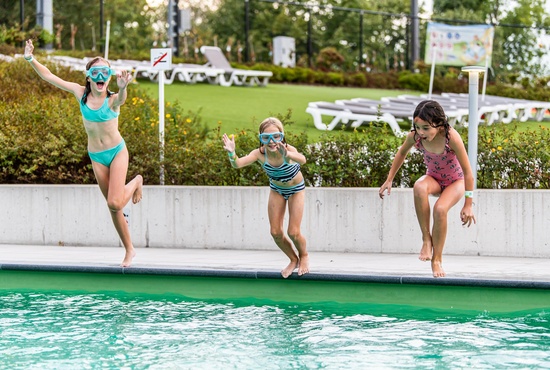 De allerkleinsten in jullie groep beleven een leuke tijd in de warme kinderbaden met fantastische waterspeeltuin. Naar beneden glijden op de waterglijbaan, dansen onder de waterfonteinen, samen op de wip... een heerlijke ontdekking van water op zijn plezantst.