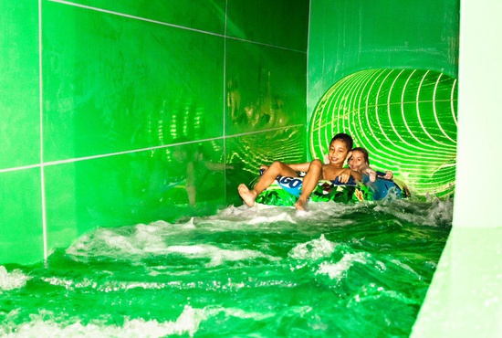 Echte snelheidsduivels leven zich uit in deze turbo glijbaan. Glijd aan een snelheid tot 36 km per uur door een donkere zwarte tunnel met een aantal leuke illusionaire effecten. Durf jij de snelste glijbaan aan?