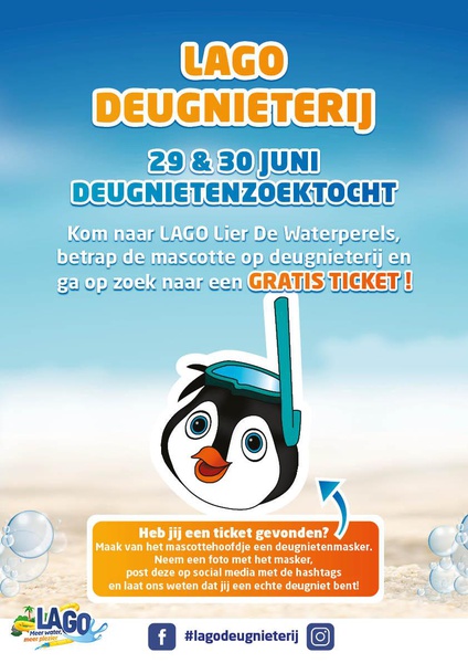 Kom tijdens het LAGO-deugnietenweekend langs bij LAGO Lier De Waterperels en betrap de mascotte op deugnieterij.