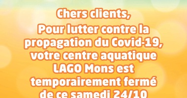 En tant qu’entreprise sportive et impliquée, LAGO veut faire tout ce qui est en son pouvoir pour freiner la propagation du virus Corona. LAGO décide donc, en concertation avec les autorités concernées, de temporairement fermer les portes de toutes ces piscines, centres de fitness et espaces ludiques.