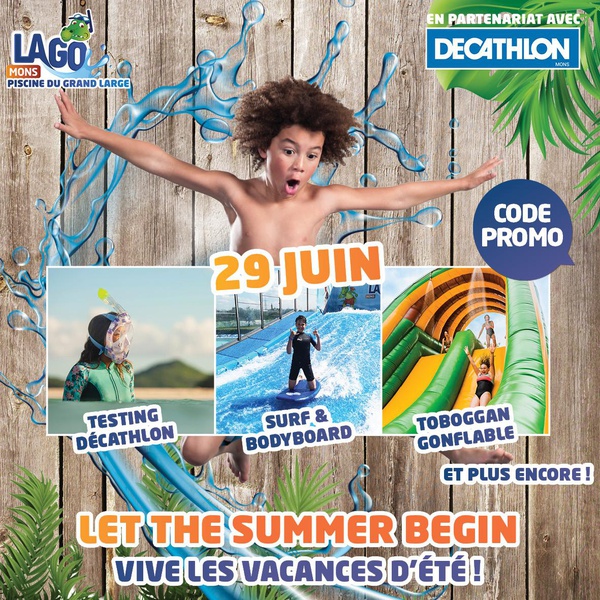 Mercredi 29 juin, LAGO Mons et DECATHLON MONS s’associent pour démarrer les vacances d’été de la meilleure façon qu’il soit !