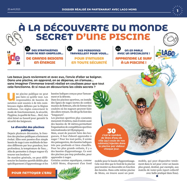 LAGO Mons et le JDE ont collaboré afin de faire la lumière sur le fonctionnement d'une piscine, son empreinte énergétique, ses différents services,...