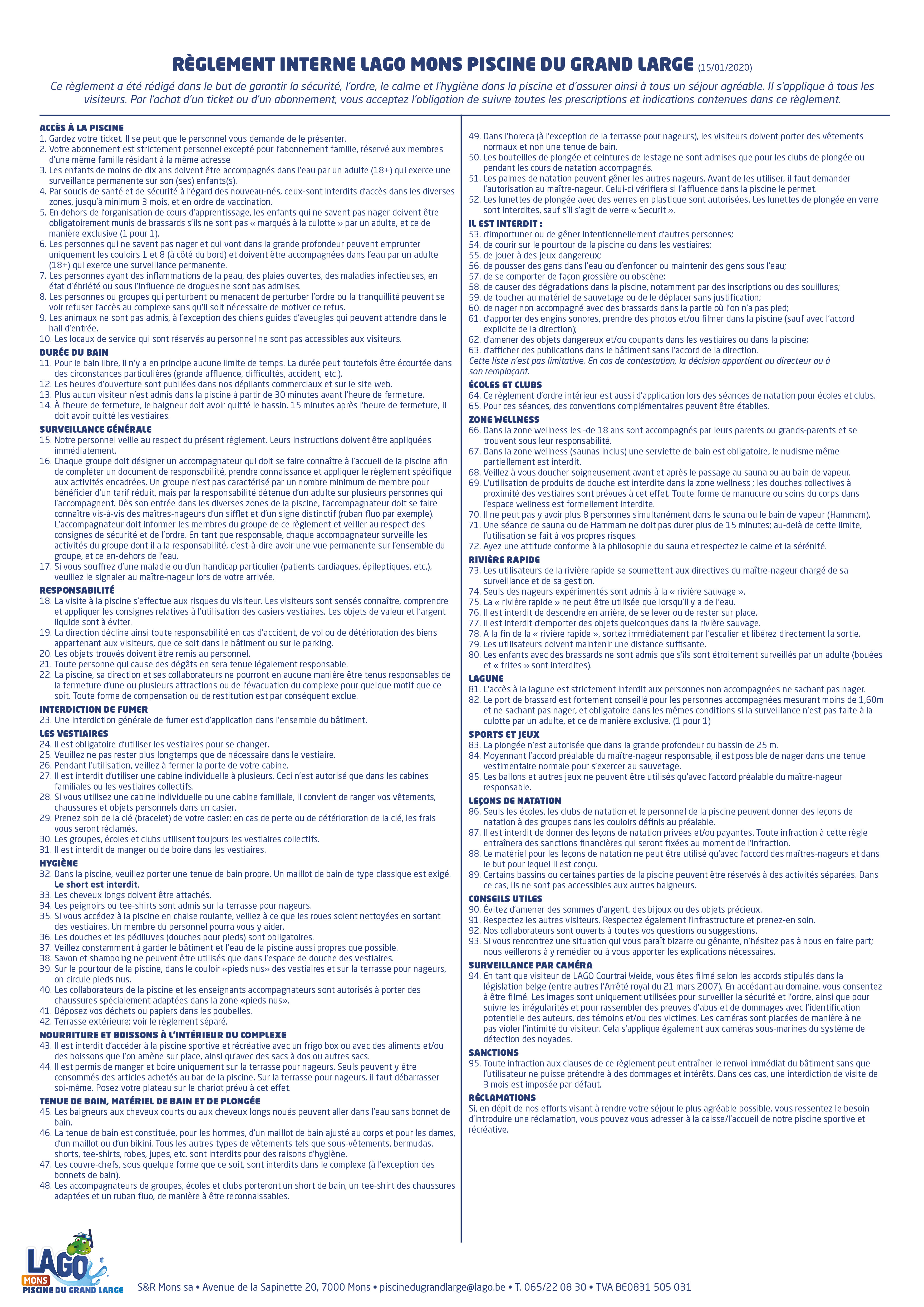 - Les enfants de moins de 10 ans doivent toujours être accompagnés d'un adulte nageur (18+).