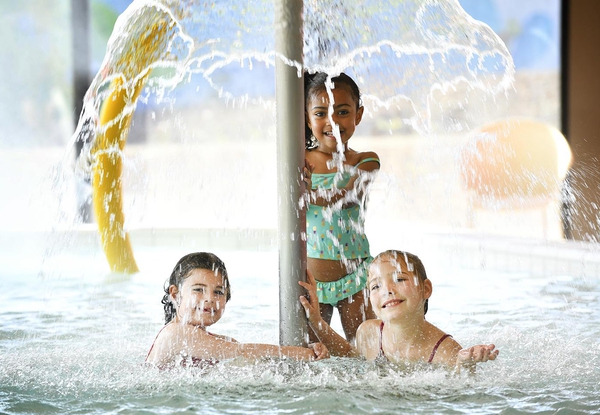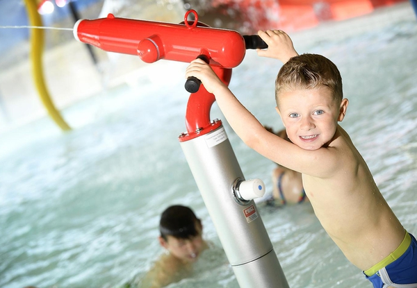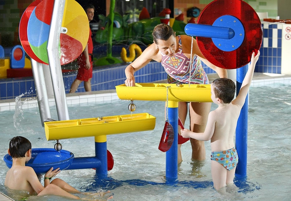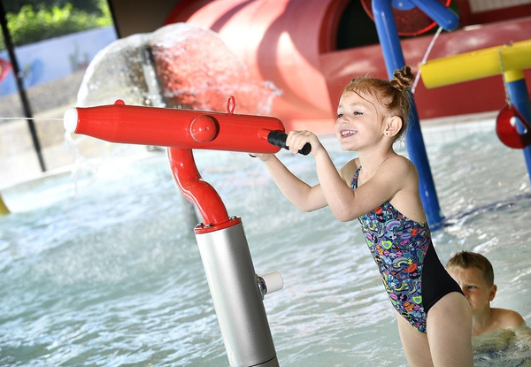 Une multitude de jeux aquatiques; balançoire, fusils à eau, champignon, petit toboggan,...