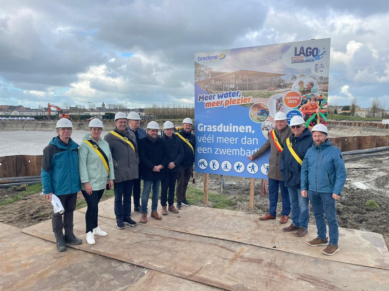 Burgemeester Steve Vandenberghe (Vooruit) en Diether Thielemans, algemeen directeur bij zwembadgroep LAGO, hebben vandaag het officiële startschot gegeven van de werken aan LAGO Bredene Grasduinen, het eerste volledig gasloze zwembad – en sportcomplex van ons land. LAGO Bredene Grasduinen kickt volledig af van fossiele brandstoffen dankzij een unieke geothermische boring tot wel 1.250 meter diep. “Een ongezien systeemstaaltje van duurzaamheid, dat nog nooit is toegepast in ons land”, zeggen Vandenberghe en Thielemans.
