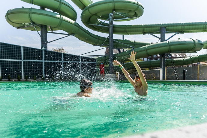 Wat de weergoden ook voorspellen, in LAGO Sint-Truiden Bloesembad beleef je elke dag een subtropische vakantie. In het zwemparadijs is het altijd 30°C. Tijdens de lente en zomer zorgen de buitenbaden en ligweide voor de ideale staycation.