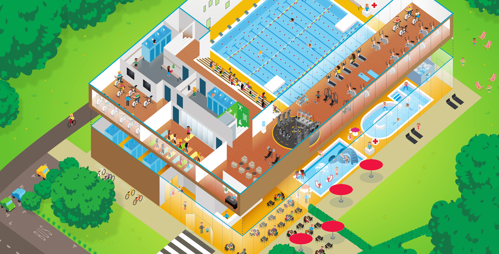 In het op en top uitgerust sportbad van LAGO Zwevegem zijn er altijd zwembanen vrij voor de trage en snelle zwemmer.