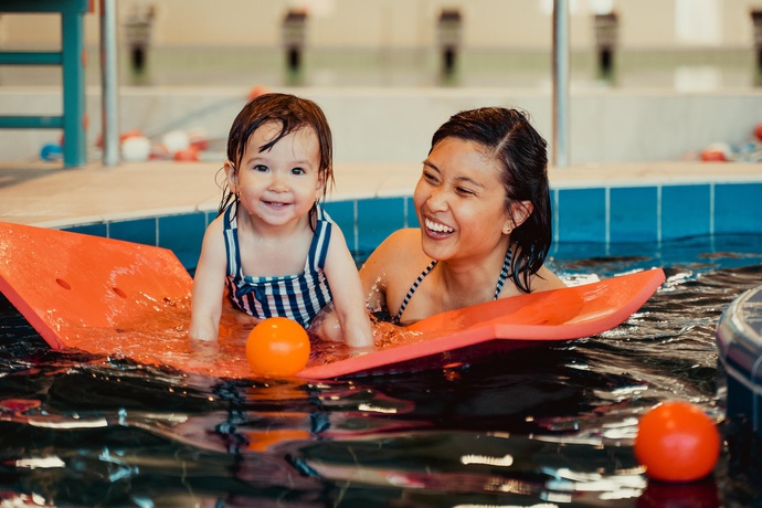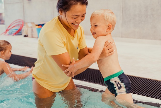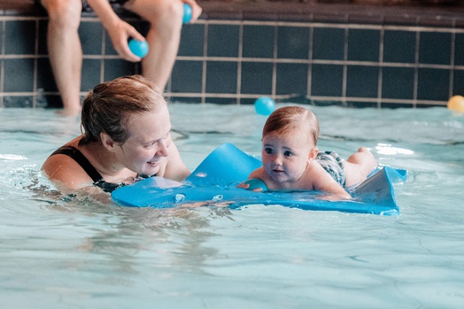 WaiWai organiseert zwemlessen voor kinderen vanaf 9 maanden. Samen zwemmen stimuleert de band tussen ouder en kind.