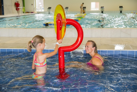 Geniet ten volle van de glimlach op het gezicht van je kleine bengel die zich helemaal uitleeft op de spelelementen in het kinderbad!